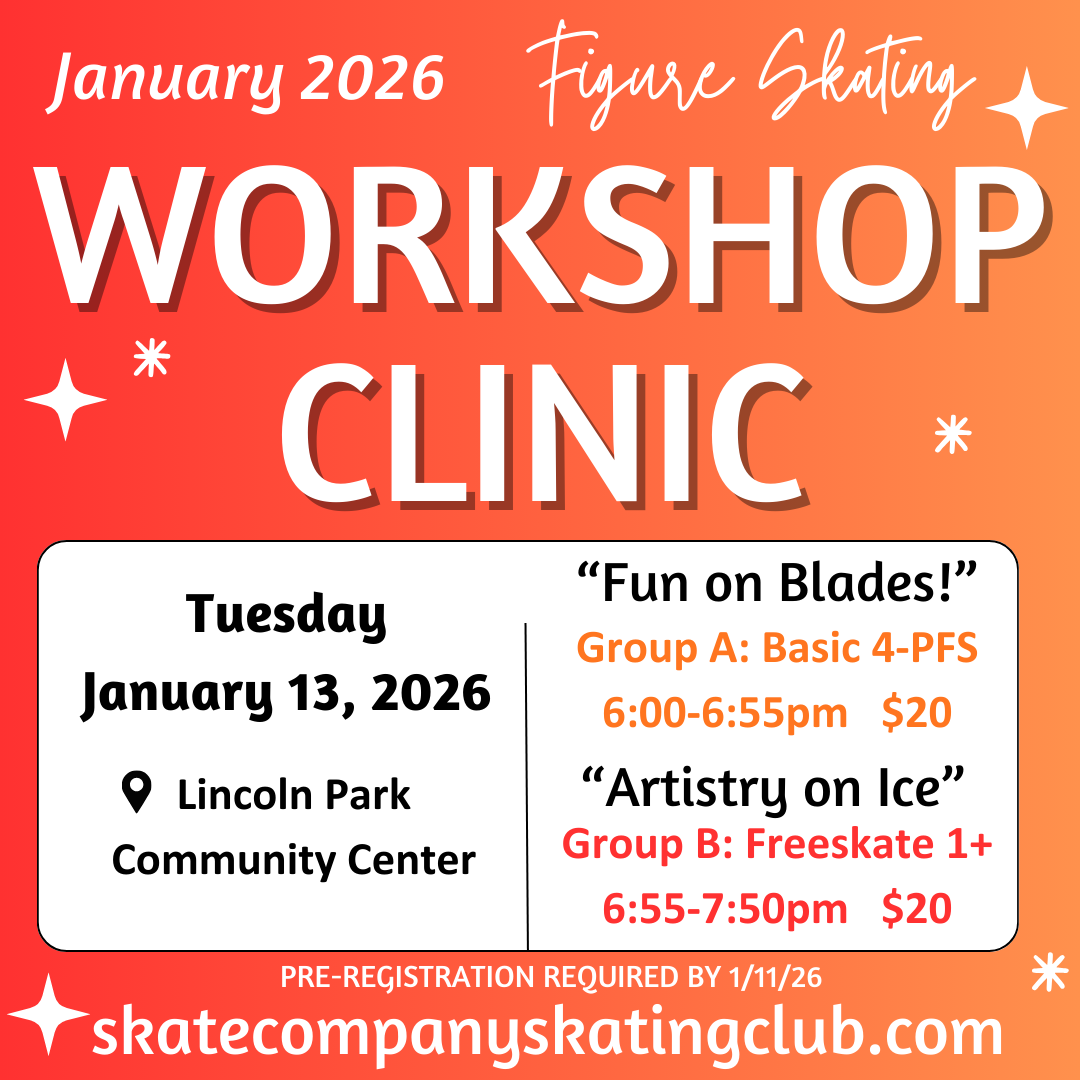 Clinic Group B is for skaters badges Freestyle 1 through Advanced, and will be held on-ice from 6:55 to 7:50. (NOTE! No off ice this clinic) The cost is $20 per skater for Group B.