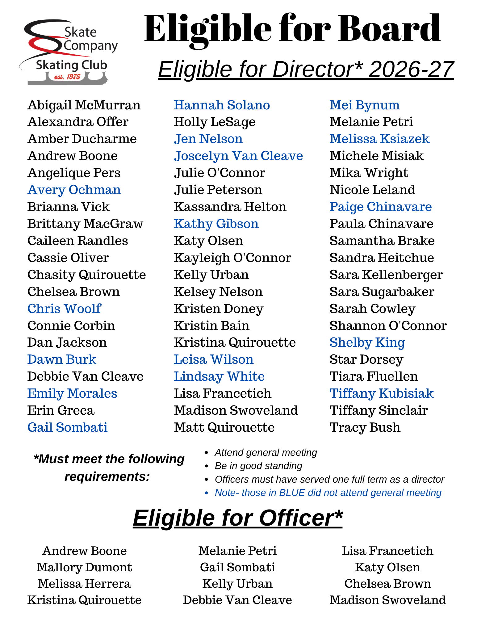 *In order fulfill an officer position, the member must have served 1 full term as a Director in the past