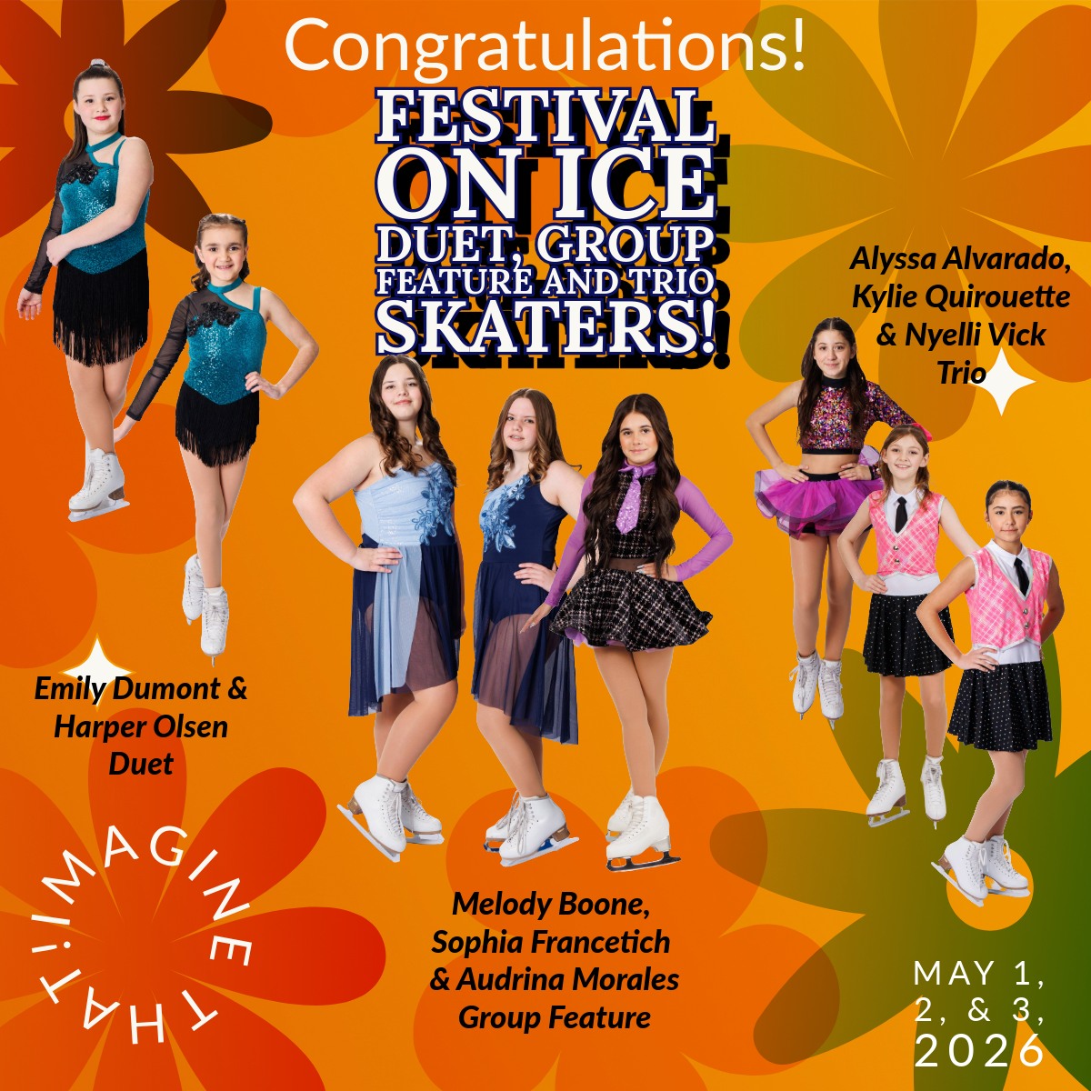 Congratulations to our 2026 Festival On Ice Special Parts Skaters! Join us May 1-3 to watch their solos, duets, trios, and features!